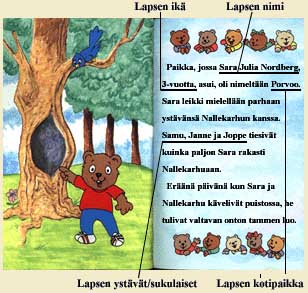 Henkilökohtaisuus tekee lapsen lukunautinnosta moninkertaisen ja todella hauskan, hänhän kuulee sadun itsestään. Tarinan riemua lapselle lisää tärkeimpien ystävien mukanaolo läpi mukaansa tempaavan sadun.